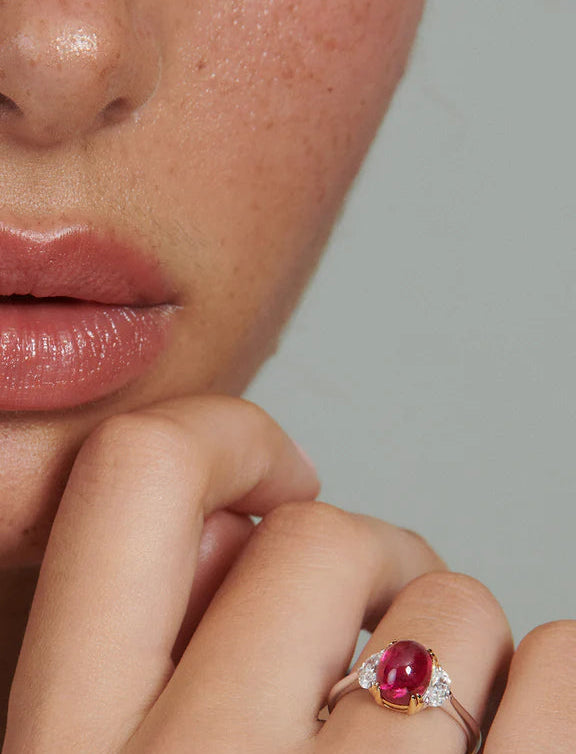 Elegante zilveren ring met robijnrode steen – tijdloos design